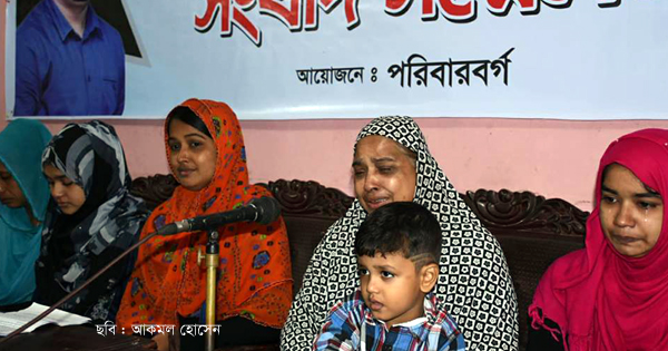 ‘মহিউদ্দিনের তিন বছরের একমাত্র শিশুপুত্র আদহাম নাওয়া-খাওয়া ভুলে আজও বাবার প্রতীক্ষায় দিন গুণছে। প্রতিনিয়ত বাবাকে খুঁজে বেড়াচ্ছে। বাবার ছবি ও পোস্টার নিয়ে বিচারের প্রার্থনা করছে।’