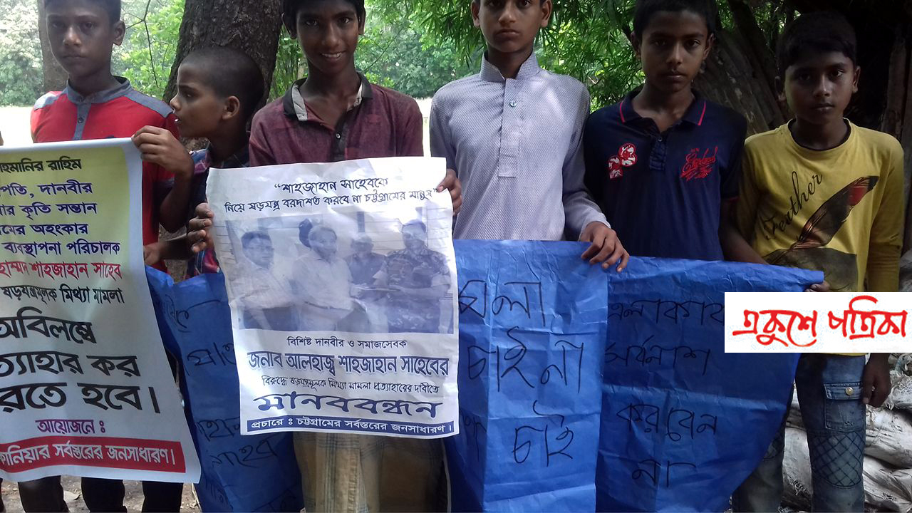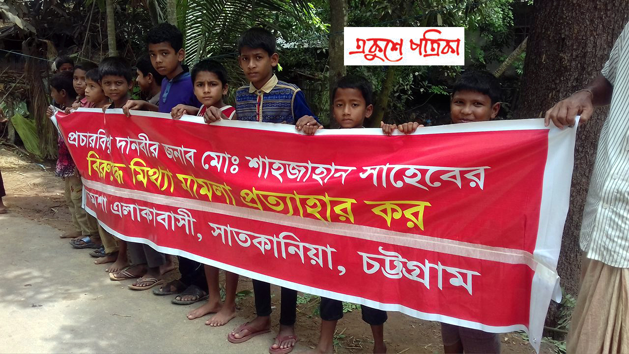 বৃহস্পতিবার সকাল ১১ টার দিকে সাতকানিয়ার নলুয়ায় শুরু হওয়া এই মানববন্ধন ঘাটিয়াডাঙ্গাসহ আশপাশে কয়েক কিলোমিটার এলাকায় বিস্তৃত হয়ে ১ টার দিকে শেষ হয়। সাতকানিয়ার সর্বস্তরের মানুষের ব্যানারে আয়োজনের কথা বলে মানববন্ধনে নারীদের পাশাপাশি শত শত শিশুকে ব্যবহার করা হয়। ঘণ্টার পর ঘণ্টা দাঁড়িয়ে থাকতে গিয়ে সীমাহীন দুর্ভোগ পোহাতে হয় মানববন্ধনে অংশগ্রহণকারী শিশুদের। বৃষ্টিতে ভিজতেও দেখা যায় তাদেরকে। এসময় ‘শাহজাহান সাহেবের বিরুদ্ধে ষড়যন্ত্রমূলক মিথ্যা মামলা প্রত্যাহার কর’, ‘শাহজাহান সাহেবের বিরুদ্ধে মামলা চাই না’, ‘শাহজাহান সাহেবর সম্মান ক্ষুণ্ন হতে দেব না’, ‘এলাকাবাসীর সর্বনাশ করবেন না’সহ নানা স্লোগান সম্বলিত প্লেকার্ড বহন করতে দেখা যায় শিশুদের।