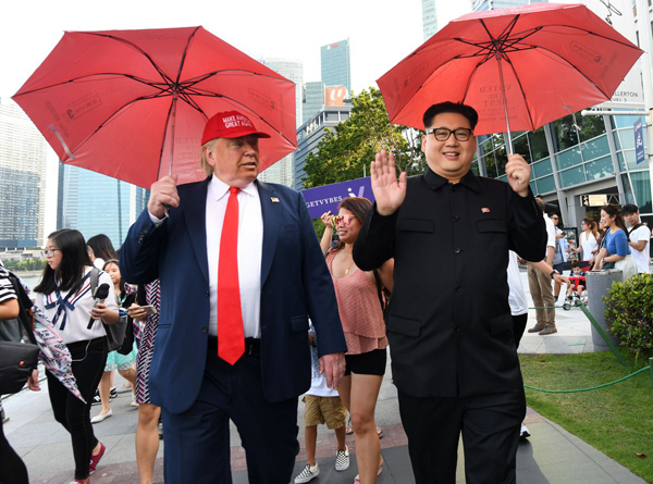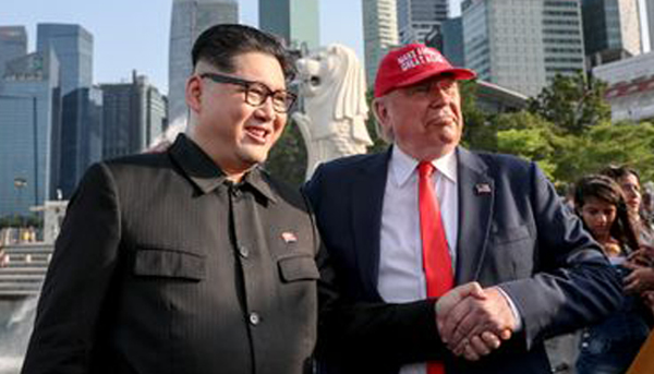 সিঙ্গাপুরের বুগিস জাংশন মলে একটি প্রমোশনাল ইভেন্টে অংশ নিয়ে ‘আসল’ ট্রাম্প-কিম সামিট অভিহিত হওয়া এ বৈঠকে ওই ব্যক্তি ক্রেতাদের উদ্দেশ্যে হাত নাড়েন। স্টেজে উভয় ব্যক্তি হাত মেলান এবং একে অপরকে জড়িয়ে ধরেন। এসময় তারা দর্শানার্থীদের মোবাইলের দিকে পোজও দেন।