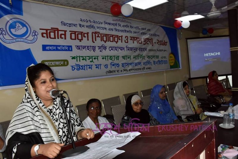 বৃহস্পতিবার দুপুরে চট্টগ্রামের আগ্রাবাদে মা ও শিশু হাসপাতাল নার্সিং ইনস্টিটিউট ও শামসুন নাহার খান নার্সিং কলেজে ডিপ্লোমা ইন নার্সিং কোর্সের নবীনবরণ অনুষ্ঠানে এ কথা বলেন তিনি।