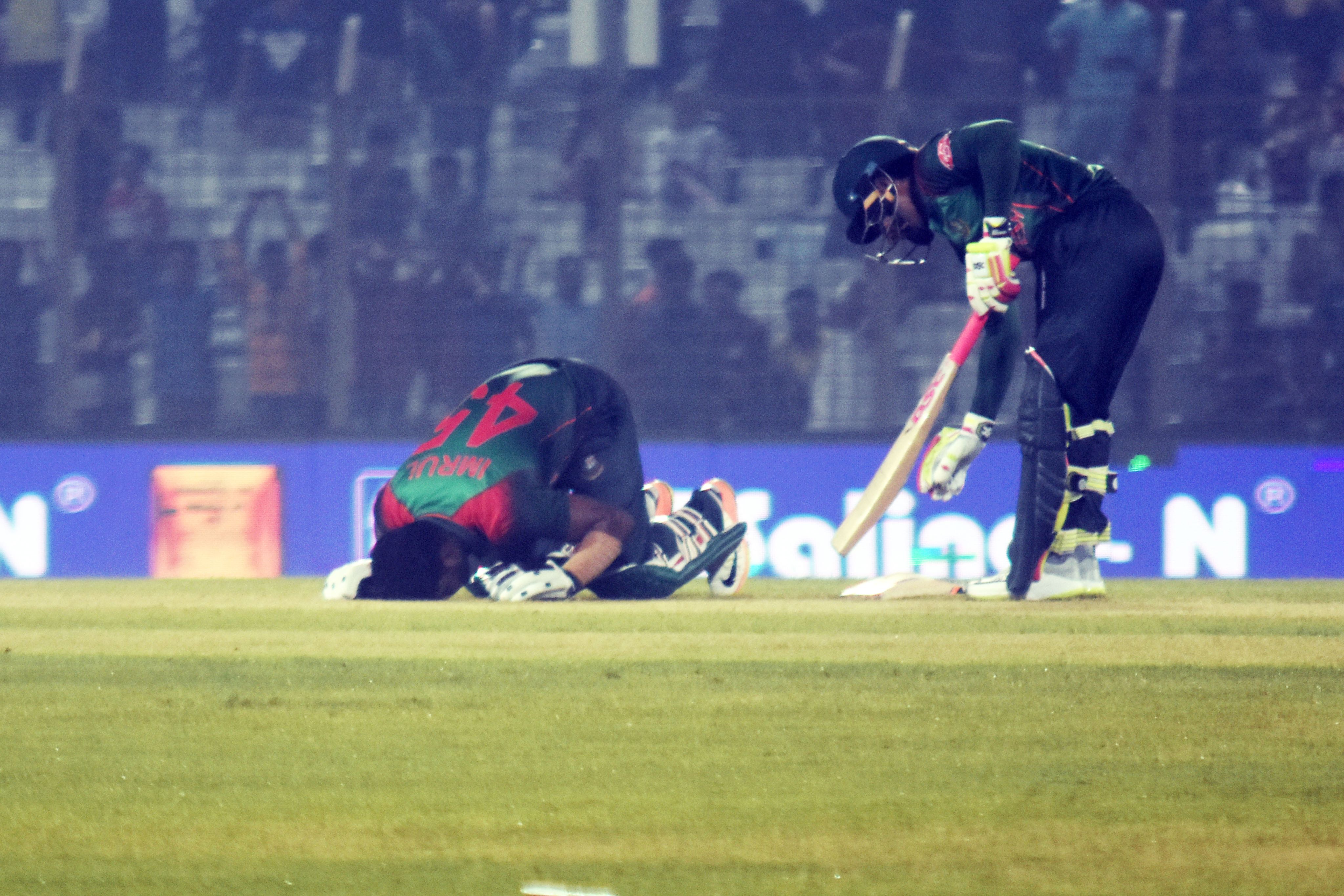 সর্বশেষ, ১১৭ রানে আউট হয়ে ফিরে গেলেও। জয়ের দ্বারপ্রান্তে ইমরুল কায়েস লড়াই করছেন মুশফিককে নিয়ে। এ প্রতিবেদক লেখা পর্যন্ত জয়ের জন্যে বাংলাদেশের ২৯ রান দরকার।