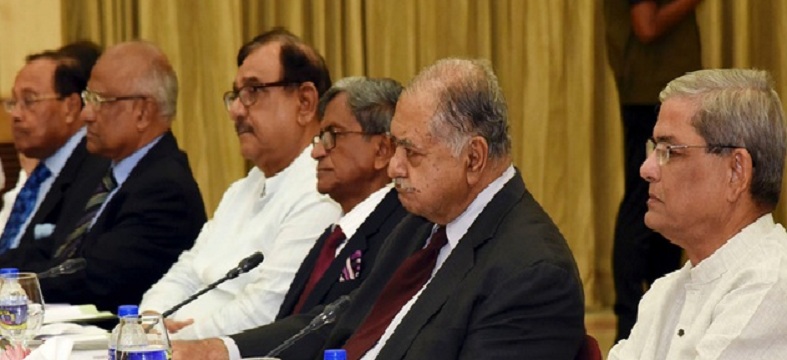 ঢাকাঃ গণভবনে প্রধানমন্ত্রীর সাথে সংলাপে জাতীয় ঐক্যফ্রন্ট নেতারা। সেই সংলাপের সকল কেন্দ্রবিন্দু একাদশ জাতীয় সংসদ নির্বাচন। নির্বাচনকালীন সরকার ও জাতীয় রাজনৈতিক সংকট সমাধানে সংলাপে চলছে আলোচনা। এই সংকট নিরসনে সংবিধানের ভেতরে বাইরেই সমাধান সম্ভব বলে জানিয়েছেন জাতীয় ঐক্যফ্রন্টের আহ্বায়ক ড. কামাল হোসেন।