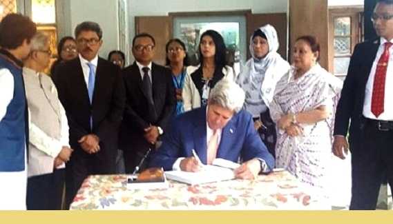 বেলা ১১ টা ৪২ মিনিটে বঙ্গবন্ধু স্মৃতি জাদুঘরে যান জন কেরি। শুরুতেই বাইরে বঙ্গবন্ধুর প্রকিতৃতিতে শ্রদ্ধা জানান। এরপর জাদুঘরের ভেতরে বঙ্গবন্ধুর বিভিন্ন স্মৃতিচিহ্ন ঘুরে দেখেন মার্কিন নেতা।