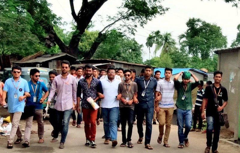 রোববার বেলা ১২টার দিকে ইউনিভার্সিটির প্রধান ফটকের সামনে থেকে শুরু হয়ে হলি ক্রিসেন্ট হাসপাতাল, ঝাউতলা রেল লাইন হয়ে ইউনিভার্সিটির প্রধান ফটকে শেষ হয় মিছিল।