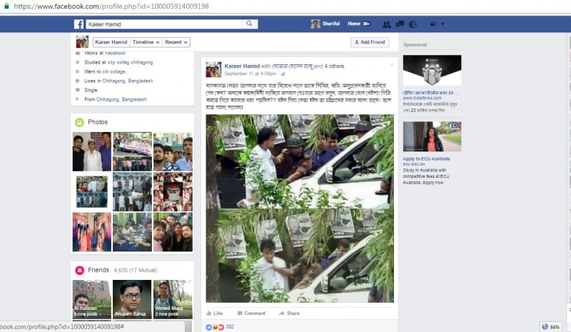 এদিকে শুক্রবার রাত ৯টায় অভিযুক্ত কায়সার হামিদের ফেসবুক ওয়ালে গিয়ে বিতর্কিত সেই পোস্টটি দেখা গেছে। এমনকি কায়সার হামিদের প্রতি সমর্থন জানিয়ে কোন কোন অনুসারীকে তার ওয়ালে পোস্ট ও কমেন্ট করতেও দেখা গেছে।
