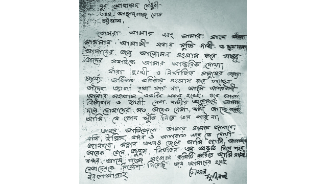 নূর মোহাম্মদ চৌধুরীকে লেখা বঙ্গবন্ধুর লেখা চিঠি