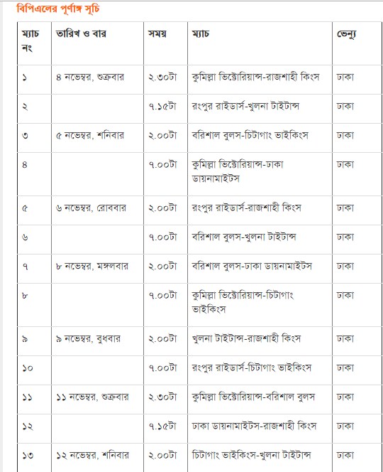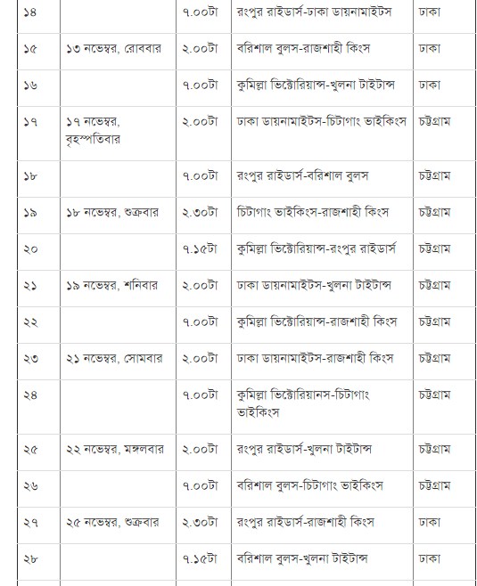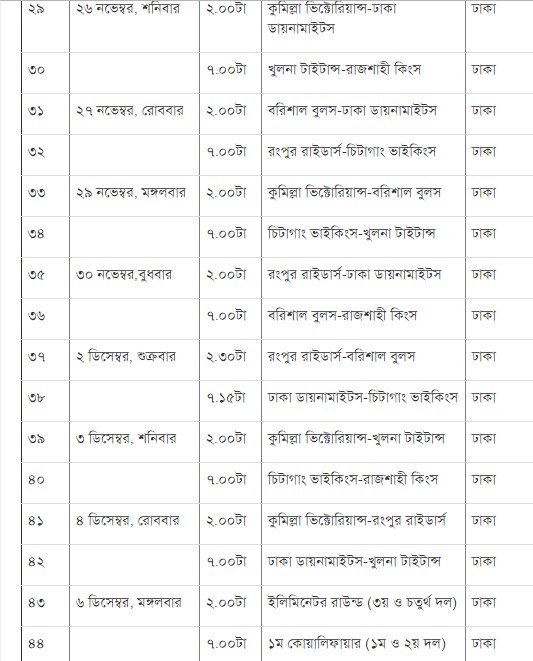 বিপিএলের পূর্ণাঙ্গ সূচি