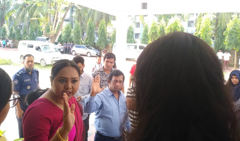 রোববার সকাল থেকে ছাত্রীরা আন্দোলন করছিল হলের সামনে। দুপুর দেড়টায় সহকারী প্রক্টর মরিয়ম ইসলাম লিজা ও এয়াকুব তাদের উপর চড়াও হন বলে অভিযোগ। এ সময় ভারপ্রাপ্ত প্রক্টর রেজাউল করিম উপস্থিত ছিলেন।