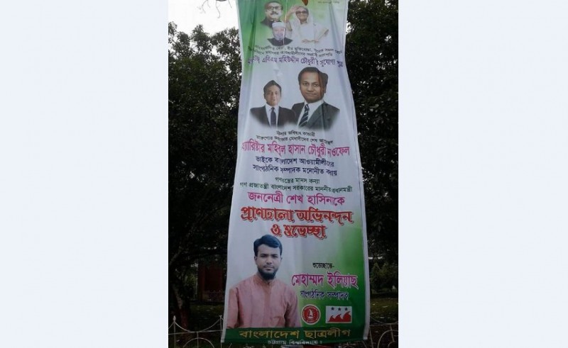 সরেজমিন দেখা গেছে, বিশ্ববিদ্যালয় কাটা পাহাড়, জিরোপয়েন্ট ও সোহরাওয়ার্র্দী মোড়ে ঝুলানো হয়েছে বিশাল আকৃতির ব্যানার। এসব ব্যানারে বঙ্গবন্ধু শেখ মুজিবুর রহমান, প্রধানমন্ত্রী শেখ হাসিনা, আওয়ামী লীগের নব মনোনীত সাংগঠনিক সম্পাদক ব্যারিস্টার মুহিবুল হাসান চৌধুরী নওফেল, চবি ছাত্রলীগের সাধারণ সম্পাদক ফজলে রাব্বী সুজন ও সাংগঠনিক সম্পাদক মোহাম্মদ ইলিয়াছের ছবি রয়েছে।