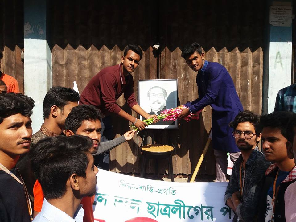পূর্ব নির্ধারিত কর্মসূচি অনুযায়ী এরপর জাতির জনক বঙ্গবন্ধু শেখ মুজিবুর রহমানের প্রতিকৃতিতে ফুল দিয়ে শ্রদ্ধা জানানো হয়।