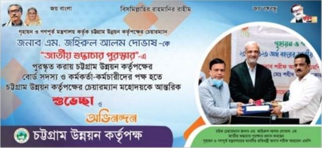 একুশে প্রতিবেদক : গত ৯ জুন গৃহায়ন ও গণপূর্ত মন্ত্রণালয়ের ‘জাতীয় শুদ্ধাচার পুরস্কারে’ ভূষিত হন চট্টগ্রাম উন্নয়ন কর্তৃপক্ষের (সিডিএ) চেয়ারম্যান…বিস্তারিত