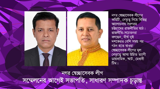 চট্টগ্রাম : চট্টগ্রাম মহানগর স্বেচ্ছাসেবক লীগের সম্মেলন নিয়ে নানা জল্পনাকল্পনা চললেও কেন্দ্রীয় নীতিনির্ধারকরা ইতোমধ্যে সভাপতি-সাধারণ সম্পাদক অনেকটা চূড়ান্ত করে ফেলেছেন…বিস্তারিত