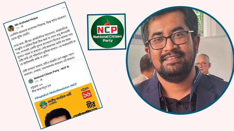 জাতীয় নাগরিক পার্টির (এনসিপি) মনোনয়ন পাওয়ার পরপরই ফেসবুকে রহস্যজনক স্ট্যাটাস দিয়ে আলোচনায় এসেছেন চট্টগ্রাম-১৬ (বাঁশখালী) আসনের প্রার্থী মীর আরশাদুল হক।…বিস্তারিত