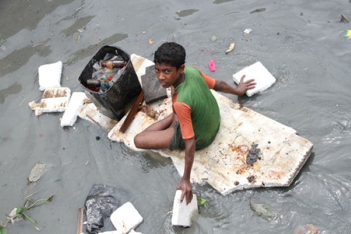 দারিদ্র্য: ভাসমান আবর্জনায় জীবিকা খুঁজছে শিশুরা