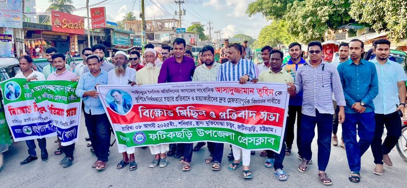 সাংবাদিক তুহিন হত্যা: ফটিকছড়িতে মানববন্ধন-বিক্ষোভ