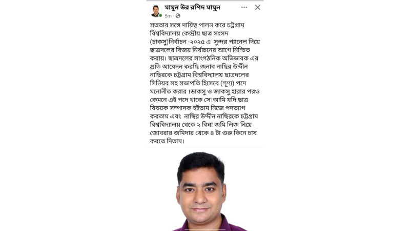 চাকসু নির্বাচন: বহিষ্কৃত ছাত্রদল নেতার ফেসবুক স্ট্যাটাসে তোলপাড়