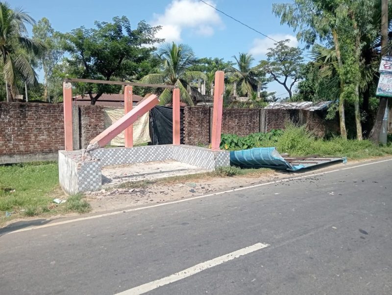 বাঁশখালীতে ফিটনেসবিহীন এস আলম বাসের ধাক্কায় যাত্রী ছাউনি লণ্ডভণ্ড