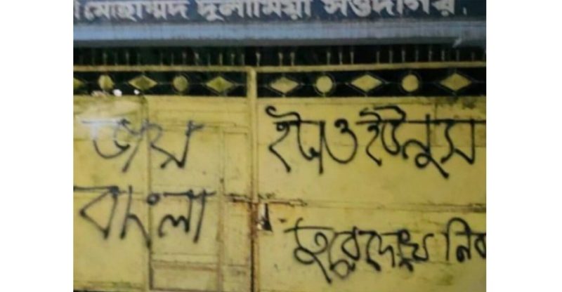 অন্তর্বর্তী সরকারের প্রধান উপদেষ্টা ড. মুহাম্মদ ইউনূসের চট্টগ্রামের হাটহাজারীর গ্রামের বাড়ির প্রধান ফটকে ‘জয় বাংলা’ ও ‘হটাও ইউনুস’ লিখে চিকা…বিস্তারিত