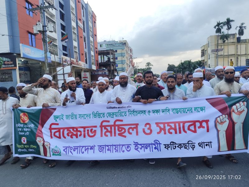 নির্বাচনের আগে ‘জুলাই সনদ’ বাস্তবায়নের দাবি পুনর্ব্যক্ত করে চট্টগ্রাম দক্ষিণ জেলা জামায়াতে ইসলামীর সাংগঠনিক সম্পাদক অধ্যাপক মাহমুদুল হাসান চৌধুরী বলেছেন,…বিস্তারিত