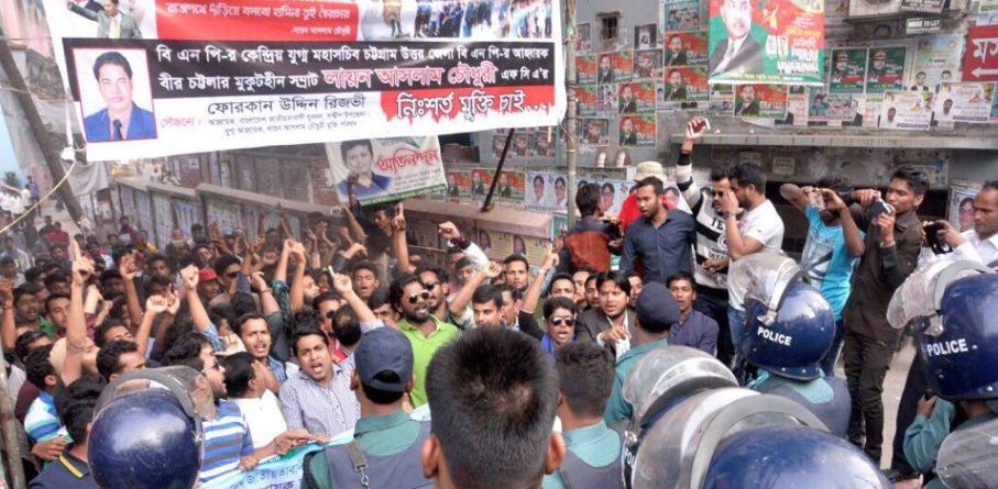 চট্টগ্রাম: বিএনপি’র সিনিয়র ভাইস চেয়ারম্যান তারেক রহমানের বিরুদ্ধে গ্রেপ্তারী পরোয়ানা জারির প্রতিবাদে কেন্দ্র ঘোষিত কর্মসূচীর অংশ হিসেবে বিক্ষোভ সমাবেশ করেছে…বিস্তারিত